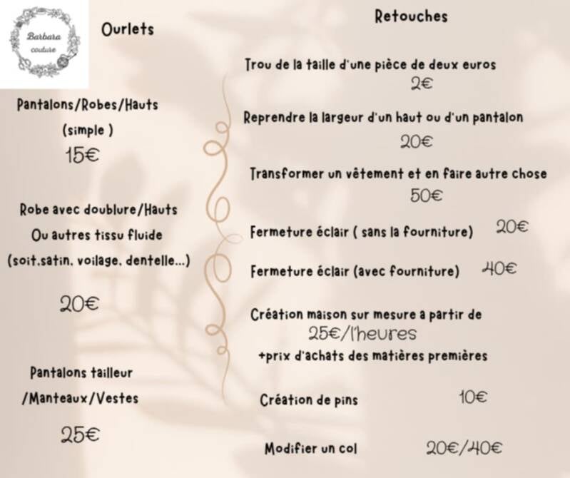 - Ourlets, petites réparations (boutons, déchirures, ourlets vêtements, réparation "trous"...)